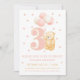 Third Birthday Cute Pink Bear Balloon Whimsical Invitation