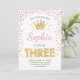Third birthday invitation Princess Gold Pink Three