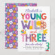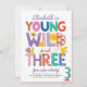 Third Birthday Invite, Rainbow, Young Wild & Three Invitation