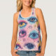 Women's All-Over Print Racerback Tank Top, White Piping, S