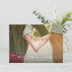 If you've decided to postpone your wedding a third time due to circumstances beyond your control, share your new wedding date with this photo wedding postponement/change the date announcement. The front features a full bleed photo with the words "third time's a charm" over it and your names and new wedding date underneath. The back of the card can be used for a personal message.