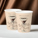Thirty Flirty and Thriving Brown 30th Birthday Paper Cups features a neutral brown and beige palette with a charming watercolor illustration of an espresso martini glass adorned with a bow. The elegant script font highlights the playful and empowering phrase "Thirty, Flirty and Thriving", perfect for a stylish milestone celebration.