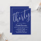 Thirty Modern Script Navy Blue 30th Birthday Party Invitation