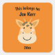 This Belongs to Back to School Cute Giraffe Orange Square Sticker