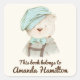 THIS BOOK BELONGS TO CUTE BEAR GINGHAM HAT SQUARE STICKER