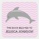 This book belongs to dolphin fish bookplate label stickers. Sea animal name tag stickers. Personalized school supplies for little boys and girls. Cute illustration with personalizable kids name. Childrens vector design in primary colors. Available in square and round shape. Custom back to school supplies for child, parents, teacher etc. Grammar / elementary school accessories. Zig zag chevron pattern background.