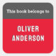 Label your books in contemporary style with these red and charcoal bookplate stickers. The contrasting block colors form the background to the words 'This book belongs to' and a name of your choice, in white typography. These simple and modern sticky labels add a colorful touch to any reading session. Ideal for 'back to school', starting college, and as a reminder to those borrowing books. To continue, click 'Personalize' and add the recipient's name to the template.