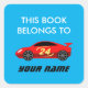 This book belongs to red racecar custom bookplate book label stickers. Toy racing vehicle name tag stickers. Personalized school supplies for little boys and girls. Cute automotive illustration with personalizable kids name. Children's race car vector design in primary colors. Available in square and round shape. Custom back to school supplies for child, parents, teacher etc. Grammar / elementary school accessories.
