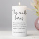 This casual yet stylish wedding memorial pillar candle is a beautiful way to remember and honor those friends and family who have passed, but you will always love and remember.