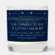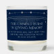 This Candle Burns Mystical Blue Silver Sun Moon Stars Celestial Space Astronomy Cosmic Wedding Memorial Candle features silver sun rays on a blue background with your text below in modern silver script typography. A beautiful way to remember and honor friends and family who have passed on your wedding day. Designed for you by Evco Studio www.zazzle.com/store/evcostudio