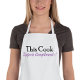 The apron is of very good quality. I used it while icing cookies. The dark colored icing washed off of the apron very well! The neck strap is sturdy and easy to resize on the adult size apron. The print was clear and well defined. I am glad I was able to personalize with name.