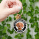 Let everyone know how much you love your best friend with this cool personalized pet photo black and white keychain. This would also make a beautiful birthday or christmas keepsake gift for your friends and family who own a dog, cat, rabbit, guinea pigs, ferret, birds, fish, reptile, etc. This template features a round photo, the funny quote "this human belongs to" and name in capital white curved text, decorated with two stars. Add your pet's name and your favorite dog picture, for better results, choose one with a horizontal orientation.