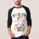 I bought the Men's Basic 3/4 Sleeve Raglan T-Shirt, White/Navy. It arrived on time for a gift and is of a great quality and fits perfectly! So cute! Zazzle has done it again! The printing was clear and filled in solidly.