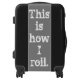 A humor "this is how I roll" suitcase will have you loving to pack your bags and travel. You can customize the color of grey background if you'd like. You may also order in different color of handle, bumper and wheels if you'd like.