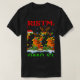 My 11 yo wore adult XL (5’7” 165#). The 8yo is small framed. She wore adult small and tied it in the back. Grandma wore adult large with long sleeve shirt underneath. Tall girl adult medium. Dark haired male adult large. Good quality dark Heather gray, Gildan brand shirt. -it was next up from basic choice and cost about $20 per shirt. Not too thick or thin. Washed and dried well, no major shrinkage. Not see-through. Can wear a bra under it fine. Screen print is just as shown and well done, front and back.