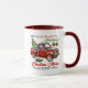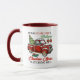 A Christmas mug that has all elements you can personalize, replacing these perfect graphics and text with your own or leave as is. This Christmas movie watching mug features a red vintage pickup truck covered with snow, Christmas tree in back, two hand drawn christmas bulbs, gift box, as well as the truck. Whether you're watching Hallmark movies during Christmas, or binging other brands, this Christmas mug will definitely get you in the holiday mood!