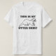 A joke shirt playing off the pun "this is my otter shirt". There is a large cartoon image of an otter adorning the shirt validating the text.