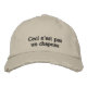 With a grateful nod to the Surrealist master here is a hat stating that it is not a hat, in embroidered lettering somewhat similar to the painting to which it refers.