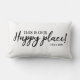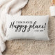 Farmhouse style pillow with custom script "This is our Happy Place" in handwritten and decorative font with a year that you can personalize.