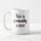 "This is Probably Wine" displayed in script font on the front of a white coffee mug. The word "wine" is in a deep burgandy color. Great gift idea for the coffee lover to add a little humor to their morning.