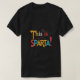 The t-shirt design boldly declares "This Is Sparta!" in a vibrant array of colors. Each word bursts with a different powerful hue, like fiery reds, golden yellows, and deep, dramatic blues. The overall effect evokes a sense of strength and battle, making a statement worthy of a Spartan warrior.