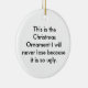Lightweight, smooth, pure white ornament with nice sheen. Perfect size to be seen from across the room ... and to attract closer inspection! Price was great for ordering enough for the whole family! Clear, bold black design just as requested. Matches the order exactly. Just so nice!