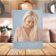 A modern 'This is your life' memory book with traditional classic typography in white including the personalized name on a pale blue background under a custom photograph. The perfect way to celebrate the life story of your loved one!