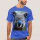 My 11 yo wore adult XL (5’7” 165#). The 8yo is small framed. She wore adult small and tied it in the back. Grandma wore adult large with long sleeve shirt underneath. Tall girl adult medium. Dark haired male adult large. Good quality dark Heather gray, Gildan brand shirt. -it was next up from basic choice and cost about $20 per shirt. Not too thick or thin. Washed and dried well, no major shrinkage. Not see-through. Can wear a bra under it fine. Screen print is just as shown and well done, front and back.