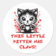 This fierce kitten is not to be messed with, just like asking if your dog bites. A little sarcastic humor.
