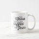 This cute mug for caffeine-loving moms features the quote "this mama runs on coffee and Jesus" in black vintage distressed script lettering. A funny and modern Christian design for busy mothers.