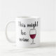 Express yourself with this cute mug featuring the words "This Might Be Wine" with a drawing of a glass of red wine. Makes a great Christmas or Birthday gift for the wine lover in your life.