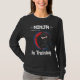 I love this shirt. I had written to the artist asking her if this picture was available on a shirt, and she wrote me back telling me where I could find the shirt. These shirts can be custom made to have a different saying. I loved this saying and went with it. The artist wrote me back later to tell me that she had seen my order go through. How's that for service? Pretty special. It's just as displayed. Perfect!