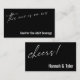 This suite's distinction is due to the contemporary script font used for accent phrases. In this piece, the elegant font was used to create a graphic depicting the words "this one is on us", placed on the front, and "cheers!" on the back. Use the template fields to add your personal details and make this unique, modern design your own. The background can be changed to any color you prefer. Please reach out with any special requests or for customizing assistance. // 158 //