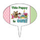 This Puppy is One birthday cake topper featuring a lit birthday candle, cupcakes, party hats, and of course, a cute little puppy! This puppy 1st birthday cake topper is perfect for the child who loves puppies!