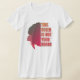 My overall review is that the T-shirt is nice, it fits true to size however the font is significantly smaller than advertised and you can't read it. The printing is unreadable and there is a strain to read it. It does not look like the advertised product. Maybe the shirt color is darker or a larger more visible font should have been used. Photos with and without flash and font is barely legible.