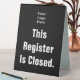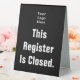 You can edit the white display text to create appropriate custom messages for your business. The display text on the black sign currently says: This Register Is Closed. A placeholder image is above the text. You can replace the image with your business logo.