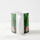 Photograph of three fly agaric mushrooms under a pine tree. Design printed on both sides of mug. Customizable text reads "This side makes you taller" on one side and "This side makes you shorter" on the other side, quotes from Alice in Wonderland.