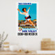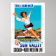 Vintage Chicago and Northwestern Railroad travel poster for Sun Valley, Idaho promoting winter sports tourism.