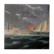 Two famous vessels by a leading New York-based painter of steamboats and sailing vessels on the New York City waterways. Thomas Hunt is rendered in the draftsman style of James Bard. The white vessel with a black-painted smokestack is ornamented with carved paddlebox lunette, a gilded pilot house eagle, a flag on the bow mast "T.H.," a larger flag from the stern reads "Thomas Hunt," The vessel, sailing in a choppy sea, is heading toward a coastline that may depict the Highlands of the Navesink.