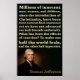 A great Thomas Jefferson quote, "Millions of innocent men, women, and children, since the introduction of Christianity, have been burnt, tortured, fined, imprisoned; yet we have not advanced one inch towards uniformity. What has been the effects of coercion? To make one half the world fools, and the other half hypocrites."