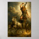 Thor the thunder god of Norse mythology on a chariot pulled by two goats, Tanngrisnir and Tanngnjóstr, on a storm and his hammer Mjölnir raised over his head.