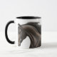 Painting of a Thoroughbred race horse by equine artist Carolyn McFann printed on a quality ringer coffee mug for equestrian sport fans and horse lovers.
