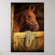 8x12 digital art poster of a thoroughbred horse looking out of his stall.