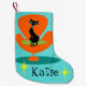 This customizable Thoroughly Modern Kitty Christmas Stocking will bring you nothing but good luck! The design features a turquoise background. Front and center, a sleek black cat is sitting in a sleek orange chair. To make this your own, simply click the "Customize It" icon and replace the existing text with your own. The opposite side features a turquoise background with teal bricks. It's purrrrrrfect!
