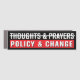 Thoughts & Prayers, Policy & Change bumper sticker. Political activism and reform design. Wear your values and make a change with our impactful collection features "Thoughts and Prayers Are Not Enough", "Policy And Change" "Support and Protect Our Children". Enough with the thoughts and prayers; it is time for policy and change. The words "thoughts and prayers" are crossed out on this social action item.
