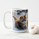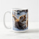 Three adorable kittens playing in the snow, cute coffee mug