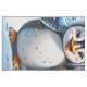 Three adorable penguins stand in festive winter hats and colorful scarves. Their big, round eyes shine with joy, while their fluffy white bellies contrast with the bright blue Christmas tree decorated with twinkling lights. The penguins smile happily and seem ready to celebrate the magic of the holiday season. All around them, delicate snowflakes dance through the air, while twinkling stars shine in the sky, creating a warm, festive atmosphere. This design perfectly captures the spirit of Christmas - full of joy, friendship and winter wonder!