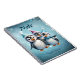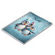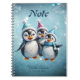 Three adorable penguins stand in festive winter hats and colorful scarves. Their big, round eyes shine with joy, while their fluffy white bellies contrast with the bright blue Christmas tree decorated with twinkling lights. The penguins smile happily and seem ready to celebrate the magic of the holiday season. All around them, delicate snowflakes dance through the air, while twinkling stars shine in the sky, creating a warm, festive atmosphere. This design perfectly captures the spirit of Christmas - full of joy, friendship and winter wonder!