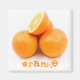 Photograph of three oranges with a half an orange balanced on top of them. Customizable text, "orange."