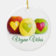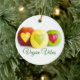 Lightweight, smooth, pure white ornament with nice sheen. Perfect size to be seen from across the room ... and to attract closer inspection! Price was great for ordering enough for the whole family! Clear, bold black design just as requested. Matches the order exactly. Just so nice!